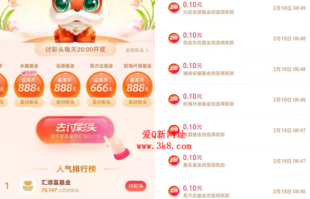福利资源 支付宝218理财节领1.5元现金 2.23提取奖励 支付宝218理财节领1.5元现金 2.23提取奖励活动很简单,只要完成15个浏览任务就行都是小毛,兴趣的可以去参加,每天20点彩头开奖最高开出888元大奖,每个彩头都可开一次奖,2月23日提取奖励 打开支付宝App-... 自媒体优化 2021-02-18 阅读8587次