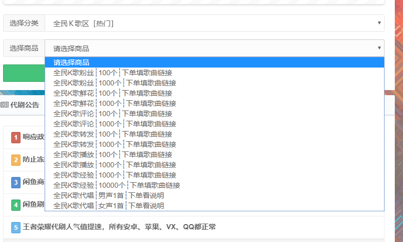 综合业务 全民K歌代唱平台提供男声、女声歌曲真人代唱业务 之前QQ代刷网里面全民K歌代刷专区里面可以刷全民K歌试听量、粉丝、鲜花、转发、经验等业务,极大的满足了客户的需求,很多客户在我们这里下单后很快就可以让自己的歌曲获得很多的试听量和鲜花,而且目前刷的速度非常快。但是玩K... 自媒体优化 2020-04-15 阅读17677次